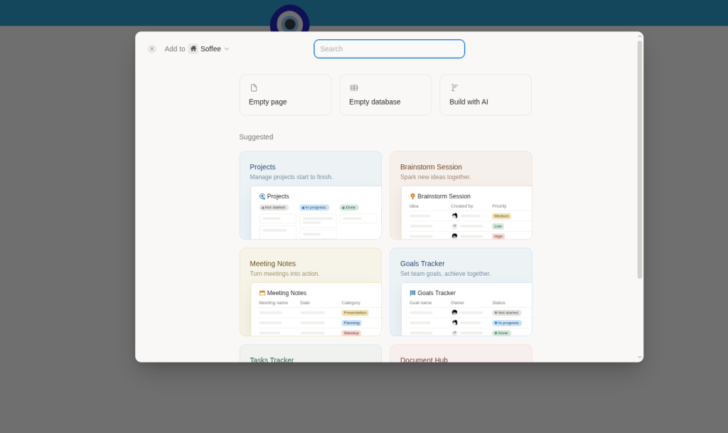 Ja mam notion podzielone na: bazę klientów, oferty, rozliczenia, szanse sprzedaży oraz bazę wiedzy. Gdy zalogujesz się na notion i klikniesz plusik przy stronach możesz od razu wybrać gotowy szablon lub stworzyć własną stronę lub bazę. My skupiamy się na bazie danych. Dlatego kliknij plusika w popup daj „Empty database” i zaczynamy tworzyć bazę klientów.